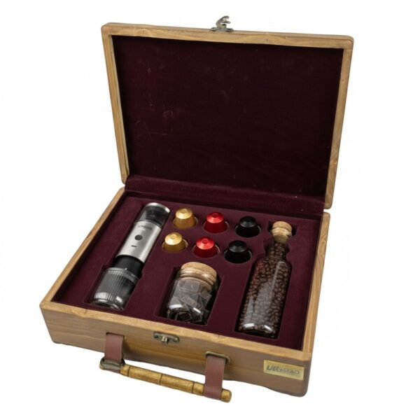 قلب این پک، قهوهساز شارژی مسافرتی است که امکان تهیه قهوه تازه و خوشطعم را در هر مکان و هر زمان فراهم میکند. این قهوهساز جمعوجور و سبک، به راحتی در کیف یا کولهپشتی جا میشود و برای سفر، محل کار یا حتی منزل مناسب است. وجود آن در پک شب زندهدار، تجربهای کاربردی و لذتبخش از نوشیدن قهوه را برای دریافتکننده فراهم میآورد و حس لوکس و مدرن هدیه را تقویت میکند.