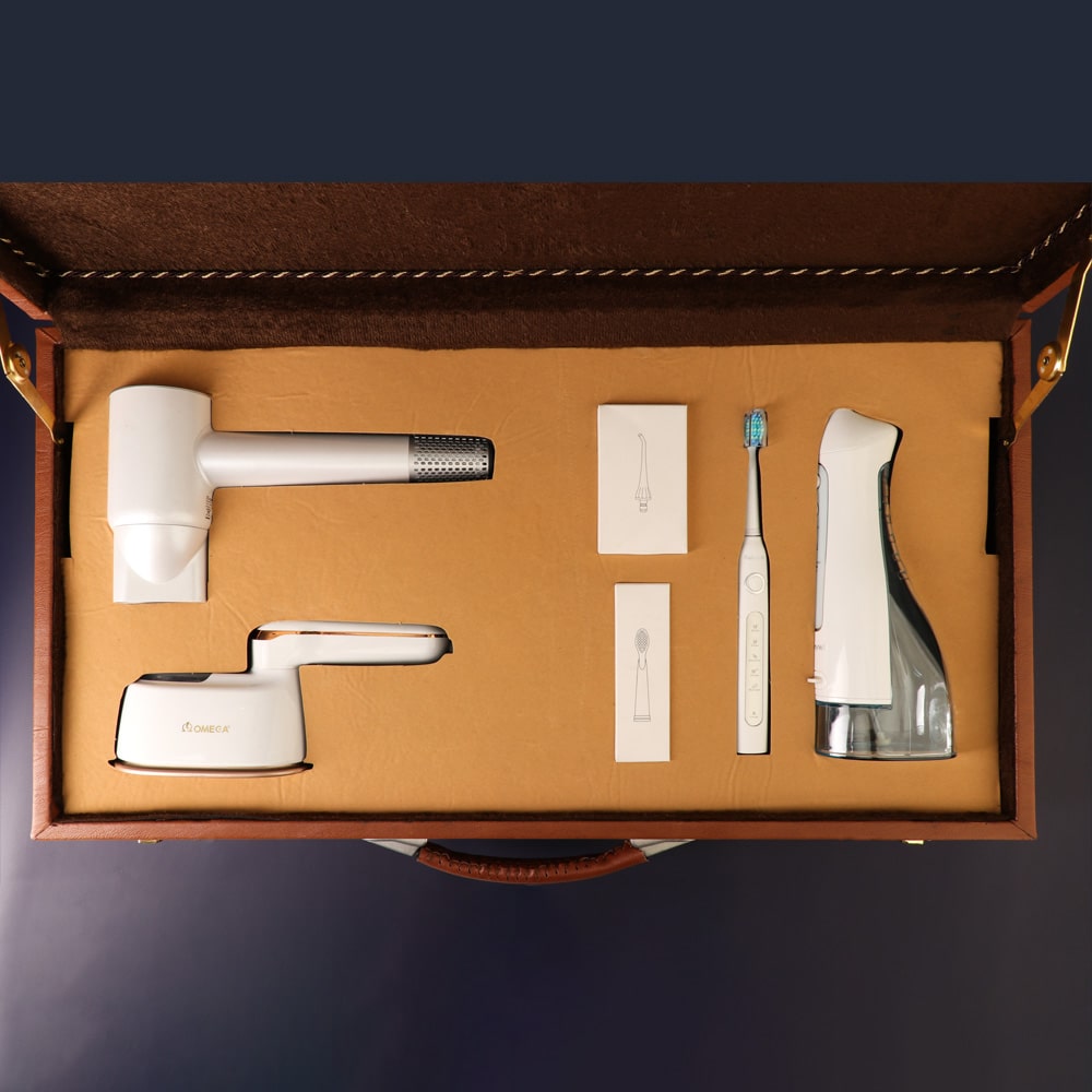 پک هدیه آراستا با الهام از مفهوم نظم و زیبایی طراحی شده و ترکیبی از وسایل کاربردی و مدرن را در خود جای داده است. این پک شامل سشوار مسافرتی، اتو بخار دستی مسافرتی و مسواک برقی به همراه واترجت است؛ مجموعه‌ای کامل برای افرادی که به ظاهر مرتب، نظافت شخصی و سبک زندگی حرفه‌ای اهمیت می‌دهند.