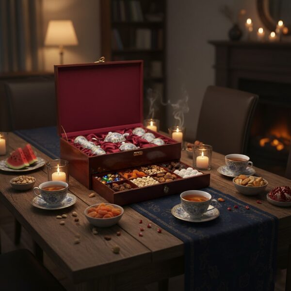 ترکیب این اقلام، یک تجربه چندحسی ایجاد میکند: از لمس و دیدن هنر فنجان و قوری چینی گرفته تا حس مزه و عطر آجیل، باسلوق و میوههای خشک. این پک، احساس سنت و مدرنیته را با هم ترکیب کرده و هدیهای ماندگار خلق میکند.