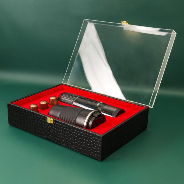 پک هدیه اسپریتو با الهام از واژه‌ی ایتالیایی Spirito به معنی “روح و انرژی”، برای عاشقان قهوه و سبک زندگی پرانرژی طراحی شده است. این پک ترکیبی از وسایل حرفه‌ای و لوکس قهوه‌نوشی است که هر روزتان را با عطر دل‌انگیز قهوه و حس تمرکز آغاز می‌کند.
