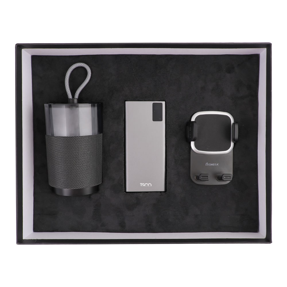 پک هدیه سازمانی “ریتم زندگی” مجموعهای از ابزارهای هوشمند و سیار است که به شما کمک میکند تا در حرکت باشید، متصل بمانید و از لحظات خود لذت ببرید. این پک، یک بیانیه از اهمیت ما به سرعت، آزادی و کیفیت زندگی شماست و شامل سه ابزار حیاتی برای حرکت و اتصال است: اسپیکر پرتابل، پاوربانک ۱۰۰۰۰ میلیآمپر ساعتی و هولدر (نگهدارنده) خودرو.