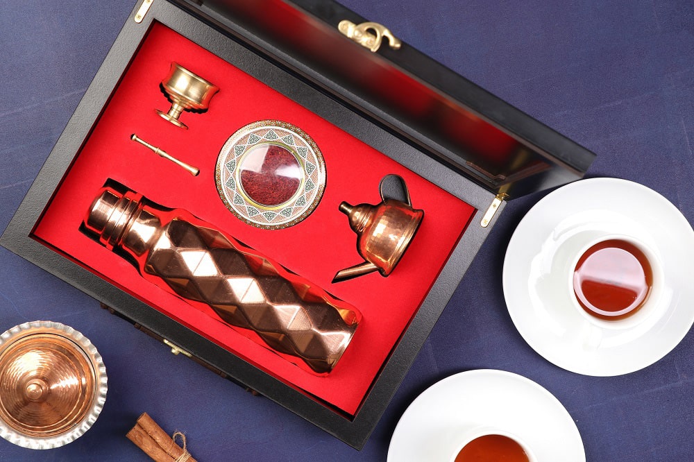 ترکیب زعفران خالص، فلاسک استیل، قوری و هونگ مسی، تجربه‌ای متفاوت از هدیه‌دادن را رقم می‌زند هدیه‌ای که از دل فرهنگ ایران برآمده و با نیازهای امروز هم‌سوست.